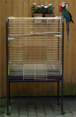 Welcher Mensch möchte sein Leben lang eingesperrt sein, noch dazu in einem Raum, der nicht größer ist, als eine Gästetoilette? In diesem Käfig könnte der Papagei gerade ´mal etwas klettern, aber natürlich nicht fliegen. So ein Käfig ist ein Gefängnis (und das leider viel zu oft über Jahrzehnte!)und kann max. als Transport- oder Krankenkäfig genutzt werden.